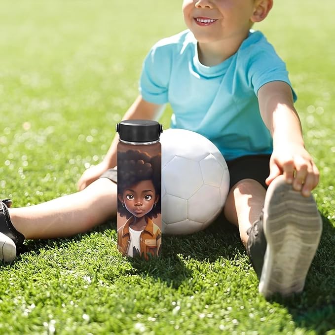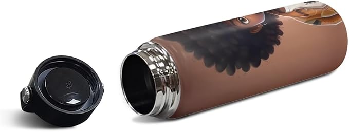 ZOUTAIRONG African Stainless Steel Water Bottle with Handle Vacuum Insulated Water Bottles 18 oz Metal Flask Afro American Travel Cup Coffee Mug Wide Mouth Bottle Leak Proof Reusable