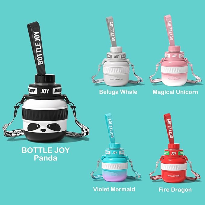 Stainless-Steel Water Bottle: Kids Water Bottle, Leakproof Lid, Perfect Sip, Double Insulated, Eco-Friendly, Dishwasher Safe & Stylish Strap, Gifts for Kids (Panda, 16 oz)