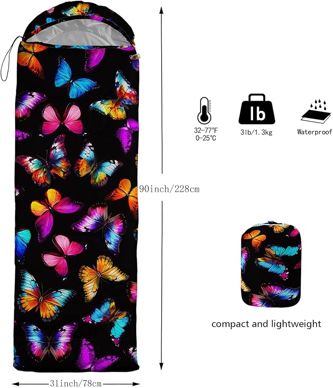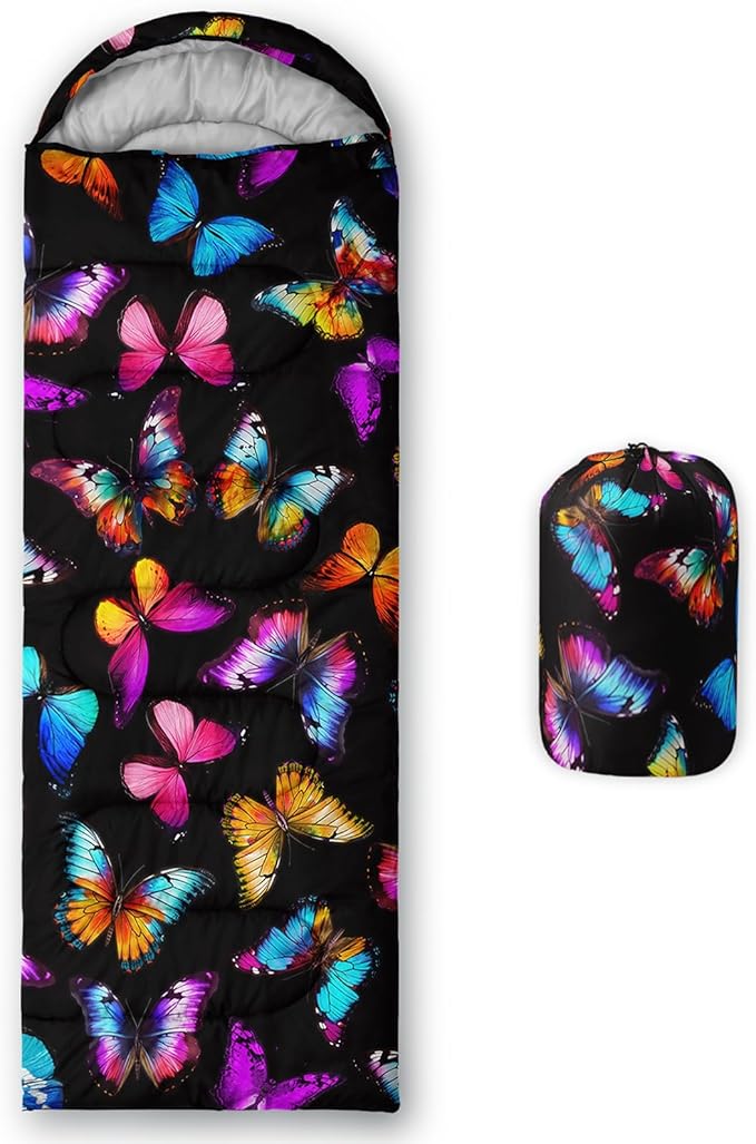 Camping Sleeping Bags,Mermaid Horse Butterfly Starry Sky 3 Season Warm & Cool Weather,Lightweight,Waterproof Sleeping Bags for Adults & Kids,Traveling,and Outdoors,Camping Gear Equipment