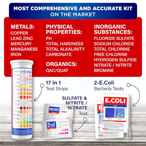 - Peace of Mind: This well water test kit comes with a 17-in-1 test strip and 2 separate bacteria tests to check for coliform and e coli. Knowing what’s in the water for peace of mind is easy