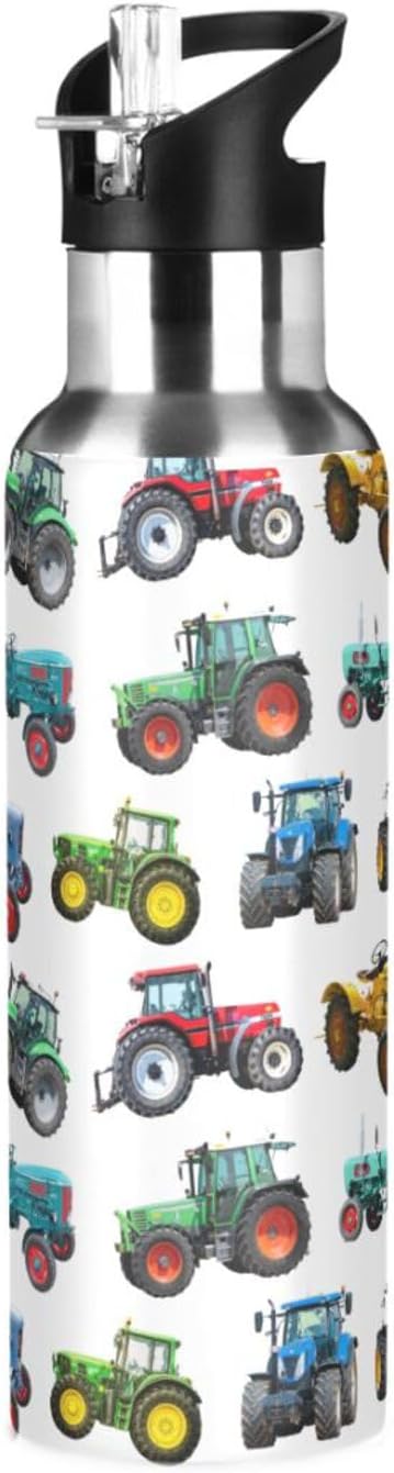 Tractor Stainless Steel Water Bottle with Straw Lid - 20 Oz Sports Insulated Water Bottle Thermos for Sport Gym Outdoor Travel School (DZ007)