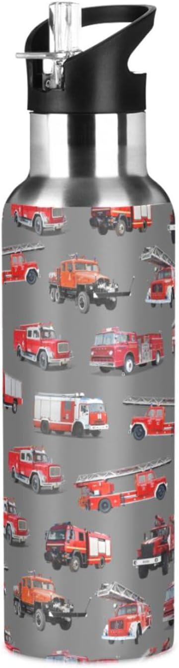 Fire Truck Stainless Steel Water Bottle with Straw Lid - 20 Oz Sports Insulated Water Bottle Thermos for Sport Gym Outdoor Travel School (DZ006)