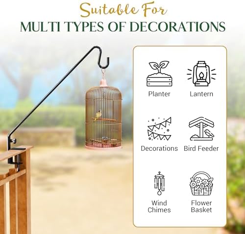 - FLEXIBLE HANGING CAPABILITIES: Our shepherds hook for bird feeder is designed to elevate your outdoor decor; The multifunctional railing planter hanger is ideal for hanging bird feeders, planters, suet baskets, lanterns, and wind chimes