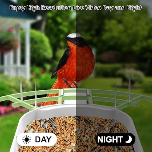 - Bird Arrival Notification. You'll receive instant notifications on your phone whenever the smart bird feeder detects bird activity. With a high-definition 2K camera, built-in microphone, and night vision lights, you can now enjoy observing birds while listening to their beautiful songs at any time of day or night with your family online.