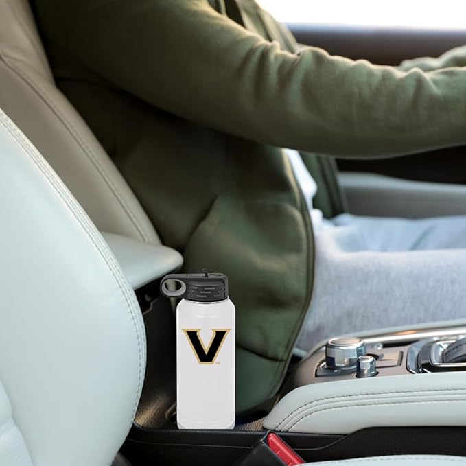 Vanderbilt University 32oz Stainless Steel Double Walled White Beverage Bottle with Flip Straw Spout - College Gear for Playoff Season – For Office, Home or Auto – Show your Commodores Pride