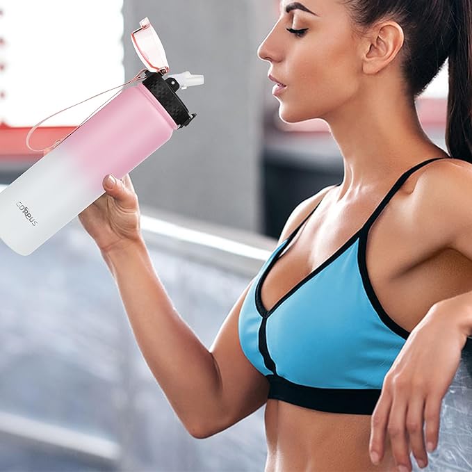 GOPPUS 32 oz Sports Water Bottle 1 Liter Double Wall Insulated Stainless Steel Water Bottles with Straw Lid Reusable Leak proof Metal water bottles with Strap Handle(Pink White 1 lid)