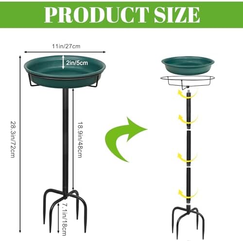 - 【Sturdy Base】Heavy duty steel stake with 4 solid prongs makes this bird bath stay in the soil of your garden upright and firmly. This birdbath is uneasy to bend, break or fracture, keeping your yard or garden full of songbirds all year long.