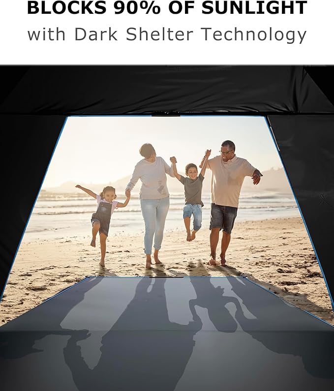 - [High-Quality Dark Shelter Coating Material] Venustas beach tents provide increased sun protection thanks to an innovative dark shelter coating material. With UPF 99+ UVProtection, it successfully blocks 99% of harmful UVA and UVB rays, reducing the risk of sunburn or harm, making it ideal for kids or adults lounging out. This ensures a cooler and more comfortable environment inside the tent.