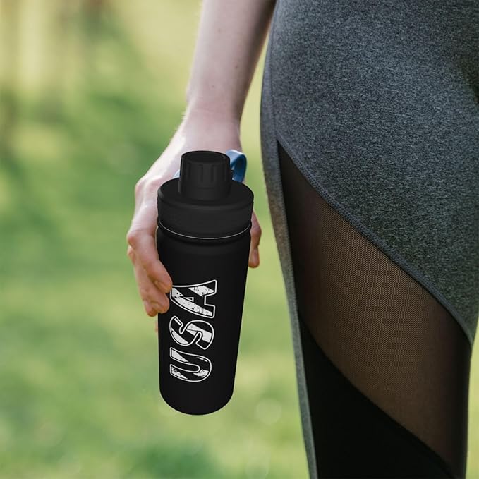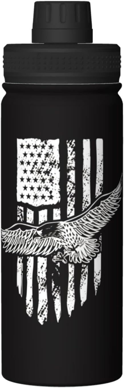 Cerburny Water Bottle Black USA Flag 18 oz Stainless Steel Insulated Bottles With Lid Wide Mouth Gym Sports Water Jug For Men Women Adult