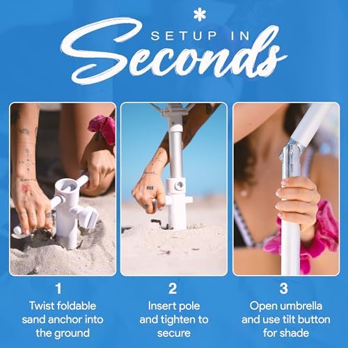 - PORTABLE: The AMMSUN Beach Umbrella is designed for convenience, featuring a carrying bag and a separate sand anchor that makes transportation a breeze with the included shoulder strap. This innovative sand anchor offers excellent stability in windy conditions and can be easily folded for compact storage, unlike traditional anchors. Simply place it in the carrying bag with your beach umbrella for hassle-free beach trips. We are confident you’ll love the quality and functionality of the AMMSUN Beach Umbrella!