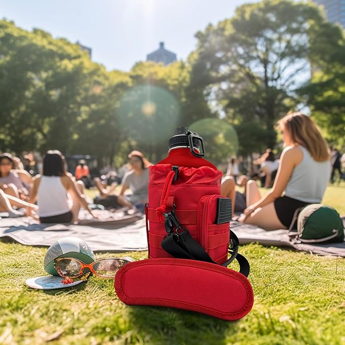 - TACTICAL BAG FOR EASY CARRYING: Bottle holder includes removable shoulder strap and removable rubberized handle; Water resistant dustproof bag has MOLLE webbing attachments and a big pocket for a phone, hidden mesh pocket for money, cards, and keys