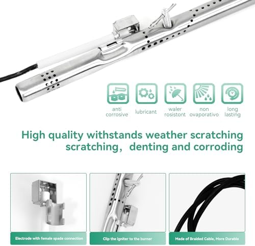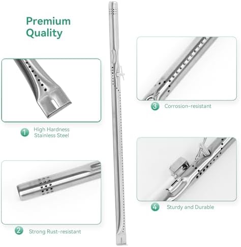 - 【Dimensions】Burner Dimesion: 17 3/4' x 3/5'. Material: Stainless steel. Original part number: G470-5200-W1. ►Heat Plates Dimension: 16 15/16' X 2 1/12'. Material: Made of high quality stainless steel, Original parts number: G470-0004-W1; ►Adjustable Crossover Tube Dimensions: Adjust from 5 to 9.5 inch, long enough will fit your grill perfectly. 【Package】 Repair kit includes 6x Grill Burners, 6x Heat Plates, 5x Adjustable Crossover Tubes, 2x ignitors.