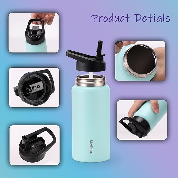 - 【BPA Free】Made of food-safe 304 18/8 grade stainless steel, no odor, safe for daily hydration.