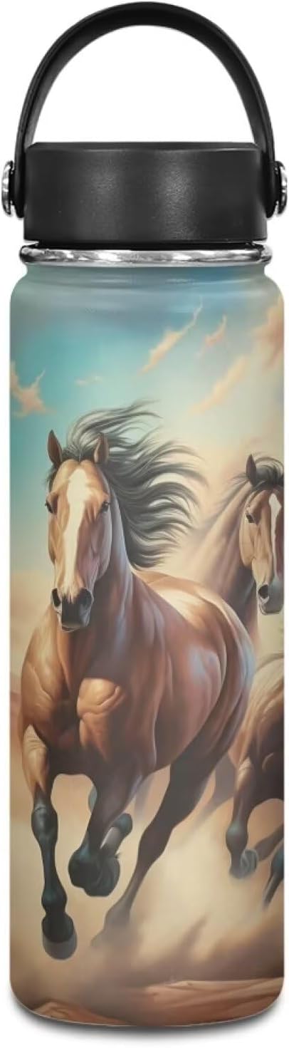 ZOUTAIRONG Trendy Horse Water Bottle Insulated 20 Oz Sport Stainless Steel Water Bottles for Travel Camping Hiking Biking Water Jug Kids Adult Wide Mouth Vacuum Thermal Bottle