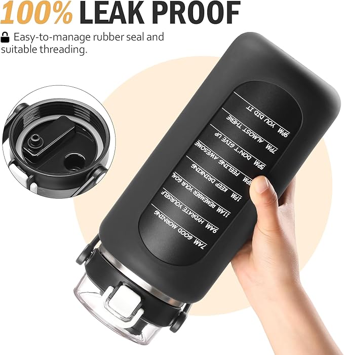 - 【ALL-DAY HYDRATION】 The 64oz/half-gallon water bottle with motivational quotes by hour keep you hydrated throughout the day and your daily water intake on track at home, gym, or while you travel on the road. A very good helper to remind you of hydration goals everyday!