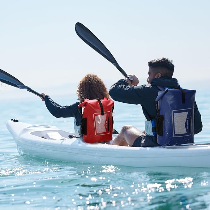 - ROLL TOP DRY BAG: Featuring a roll top closure design to ensure waterproof and anti theft. All you need to do is fold the bag down to your desired size after storing your gear, then click the two buckles at the mouth of the bag to form a handle, or connect the buckles on both sides of the bag to complete the seal. Finally attach the top buckle and adjust the straps
