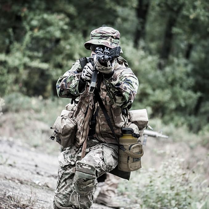 - 【TACTICAL SPORTS BOTTLE with HOLDER】- Made of military-grade tear-resistant fabric. The nylon sleeve is removable and washable as well as a removable umbrella cord. The Mollo system offers more possibilities to carry more stuff.