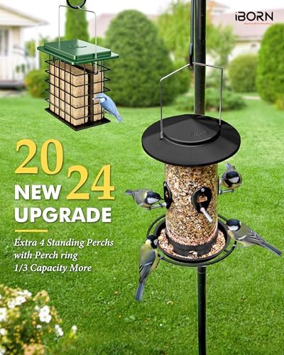 - 【2.8lb Large Capacity&Port Control Seeds Flow,Fill Once a Week】iBorn Large Capacity Bird Feeder Holds up to 2.8lb of seed,reduce the number of regular fills.With right size of each port control seeds flow into the tray.Reduce excess seeds waste and make it easier to fill once a week.