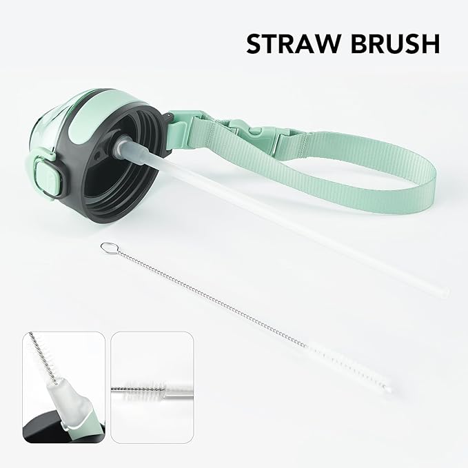 - Humanized Design: The one-hand operation button allows for easy access to water. Highly suitable for boys and girls, and all ages. The flip-top lid of the insulated thermos is used a secure lock, making it dust-free and leak-proof. The included straw brush makes maintaining your bottle's cleanliness uncomplicated and efficient.