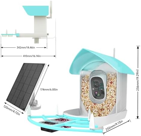 Bird Feeder with Camera, Auto Capture Wiress Bird Feeder Camera, AI Identify Bird Breed,FHD Waterproof Outdoor Bird Watching Camera,Solar-Powered, for Garden,Yard,Park,Ideal Gift for Mom and Dad,Blue