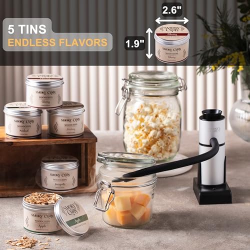 - Cost-Effective Choice: Smoky Crafts drink smoker wood chips refill set includes 5 large tins, each containing nearly 2 oz of smoke gun wood chips—almost 2 times the amount typically found in standard sets. This provides exceptional value, as our whiskey smoker wood chips are significantly more cost-effective compared to other brands, which often offer much smaller quantities. Enjoy a rich, smoky flavor in your cocktails with our high-quality drink smoker chips, perfect for elevating your drink experience