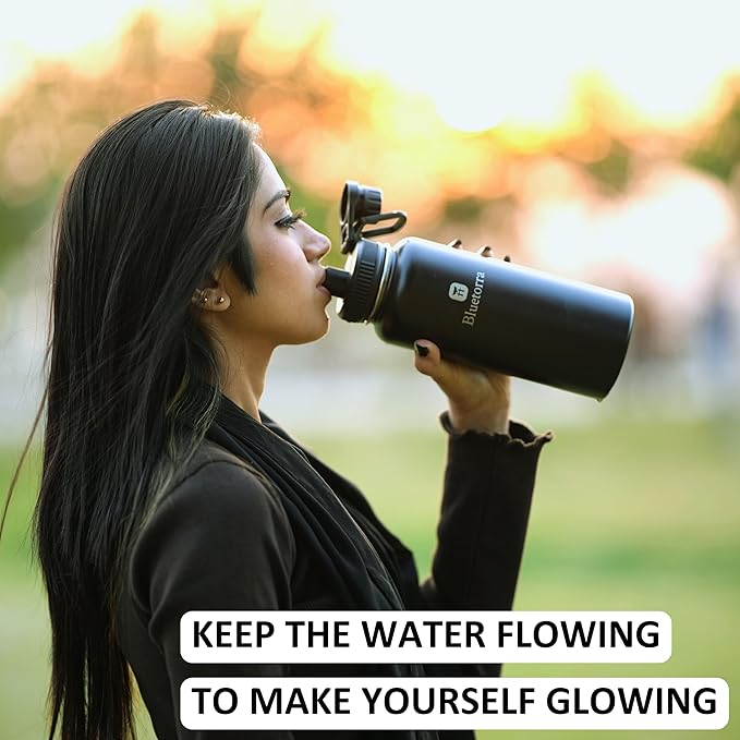 Bluetorra Black Stainless Steel Water Bottle 32 oz Vacuum Insulated, Leakproof Lid Keeps Drinks Cold 24 Hours, Durable - Ideal for Sports, Gym, Outdoor Activities Stay Hydrated water bottle