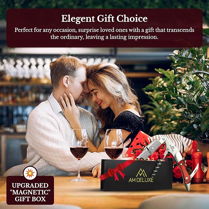 - ELEGANT GIFT CHOICE - Elevate celebrations with gifting our Premium AM DELUXE Waiter's Corkscrew. Timeless craftsmanship meets practical elegance for a refined uncorking experience. Perfect for any occasion, surprise loved ones with a gift that transcends the ordinary, leaving a lasting impression.