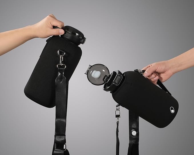 - Storage Sleeve for On-the-Go Convenience: Our large metal water bottle comes with a thoughtfully designed sleeve for maximum portability. Equipped with a leather hand strap for easy carrying in one hand and a shoulder strap that doubles as a storage compartment, this sleeve is a game-changer. Plus, this water flask includes a storage bag, metal buckle rings, and a nylon cord for hanging sunglasses. Need a crossbody bag? Simply connect the hooks on the shoulder strap for added versatility.