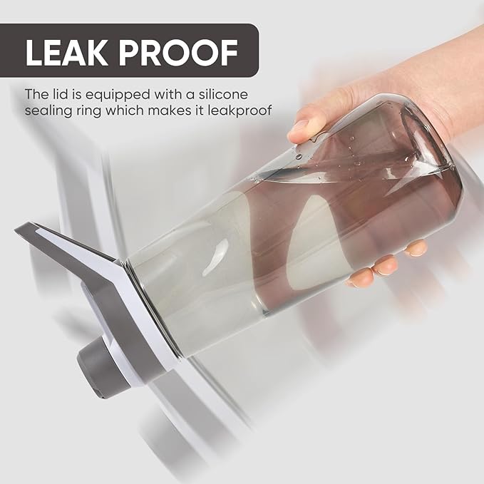 - LEAK PROOF & REUSABLE WATER BOTTLE - The durable plastic water bottle designed with a silicone ring inside the cup cover, as the cup cover is tightened, there is no need to worry about leakage. 100% Leak Proof.