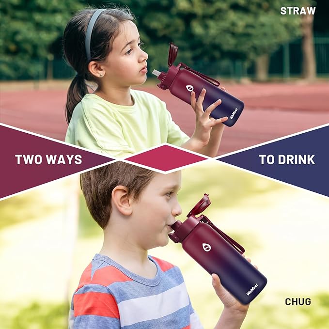32oz Water Bottle with Removable Straw and Spout Lid Two Ways to Drink, 18/10 Stainless Steel Insulated Water Bottle, BPA-Free, Leak Proof, Double wall, for Sports, Gym