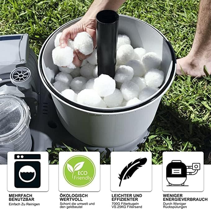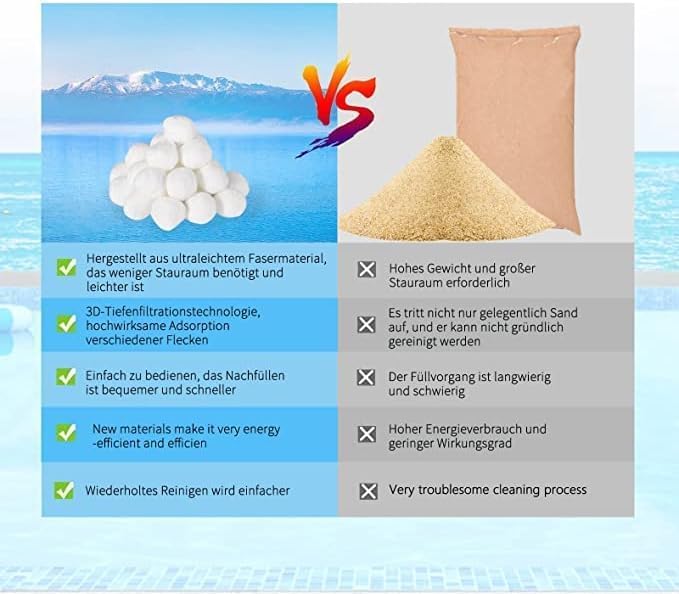 - Service Life: Unlike sand, the filter ball does not block your filter and requires less backwash for maintenance purposes. Lighter, more comfortable and more efficient than traditional sand filter, perfect alternative to sand filter sand, filter glass and other glass media.