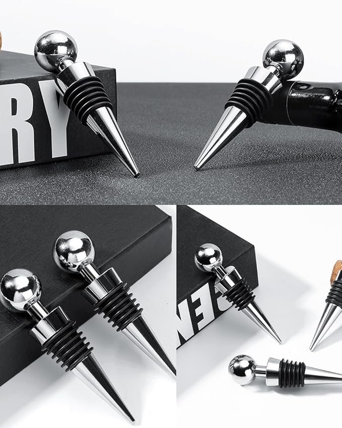 - 【Keep Your Drinks Fresh and Leak-Free】Our wine bottle stoppers are perfect for sealing wine, champagne, soda, and more, ensuring your beverages remain fresh and spill-free. Crafted from durable zinc alloy and food-grade silicone, these stoppers are designed to last and maintain the integrity of your drinks.