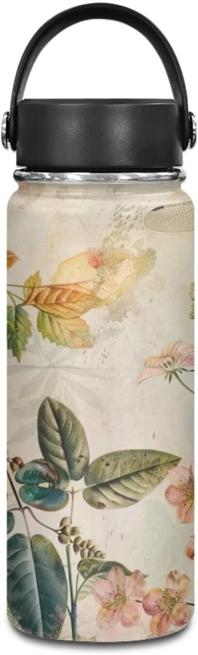Floral Insulated Water Bottle with Lid -18 Oz Vacuum Stainless Steel Reusable Leak & Sweat Proof Gym Sports Travel Water Bottle for Women Men