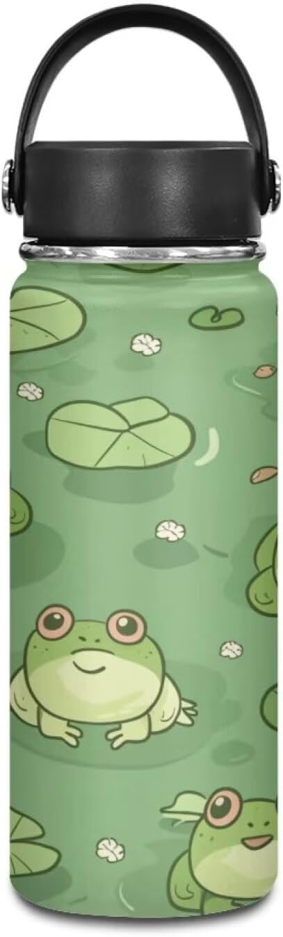 Frog Stainless Steel Water Bottles 18 Oz Insulated Water Bottles Leakproof Reusable Sports Water Bottle for Beach, Travel Cup Coffee Mug Birthday Gifts for Women