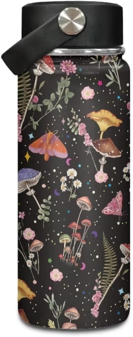 Wild Mushoom Water Bottle 18 Oz for Women Insulated Water Bottles with Handle Flask Wide Mouth Bottle Vacuum Stainless Steel Metal Water Bottle