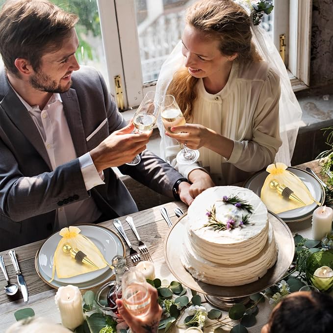 24 Pcs Gold Wine Stoppers Bulk Wine Saver Wedding Party Gifts Favors for Guests Stainless Steel Bottle Stopper Wine Corks Beverage Vacuum Silicone Stopper with Sheer Bags for Wedding Bar