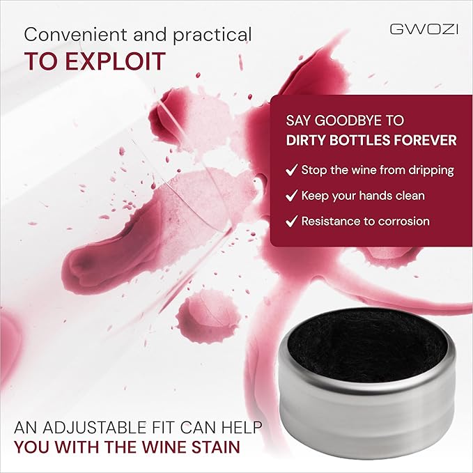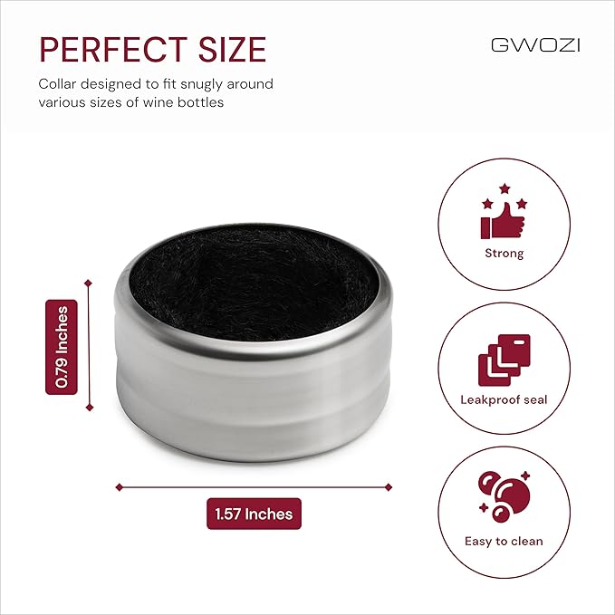 - PREVENTS LEAKAGE: The leakproof wine collar drip ring fits snugly around your bottle, creating a barrier that keeps any wine drips from escaping. This ensures a clean and stylish pouring experience.