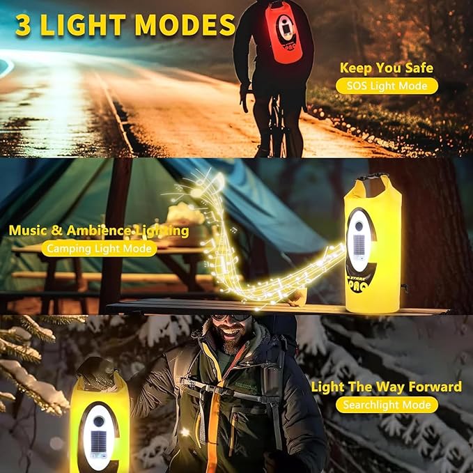 Solar Dry Bag Backpack 10L,Built-in Bluetooth Speaker & LED(4 Lighting Modes),Solar or USB Rechargeable,IP66 Waterproof Floating
