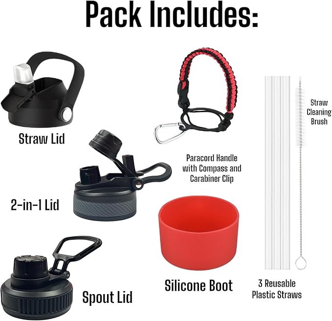- ADVENTURE-READY ACCESSORIES: With a silicone protective boot, a paracord bottle holder featuring a compass and carabiner clip, an extra plastic straw, and a convenient straw cleaning brush, our set is designed for those always on the move.