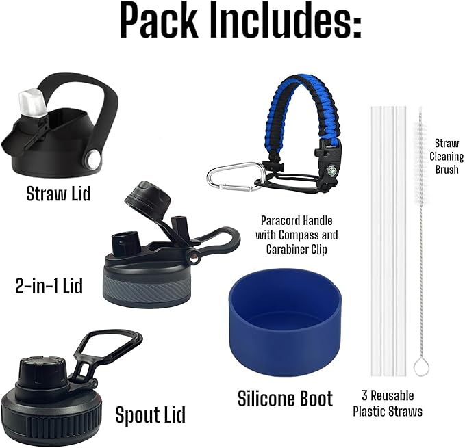 - ADVENTURE-READY ACCESSORIES: With a silicone protective boot, a paracord bottle holder featuring a compass and carabiner clip, an extra plastic straw, and a convenient straw cleaning brush, our set is designed for those always on the move.