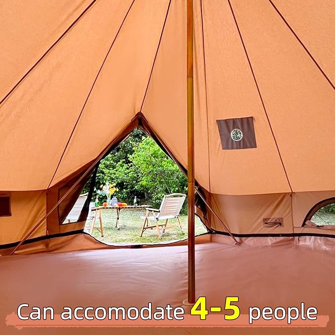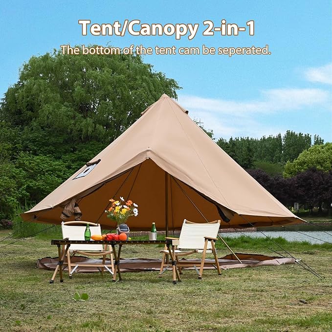 Cotton Canvas Bell Tent with Stove Jack, Roomy Yurt for Family Glamping Camping, 4 Season Tent with Zipped Removable Floor
