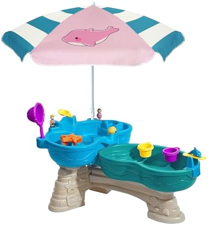 - This AMMSUN 47 inch kids water table Umbrella is designed for providing sun protection for children to paly outdoors especially to play with their activity table, water table, picnic table and also great for beach side. Made of quality fabric for long durability. The opening and closing is super easy with push up design, recommended to be done by an adult.