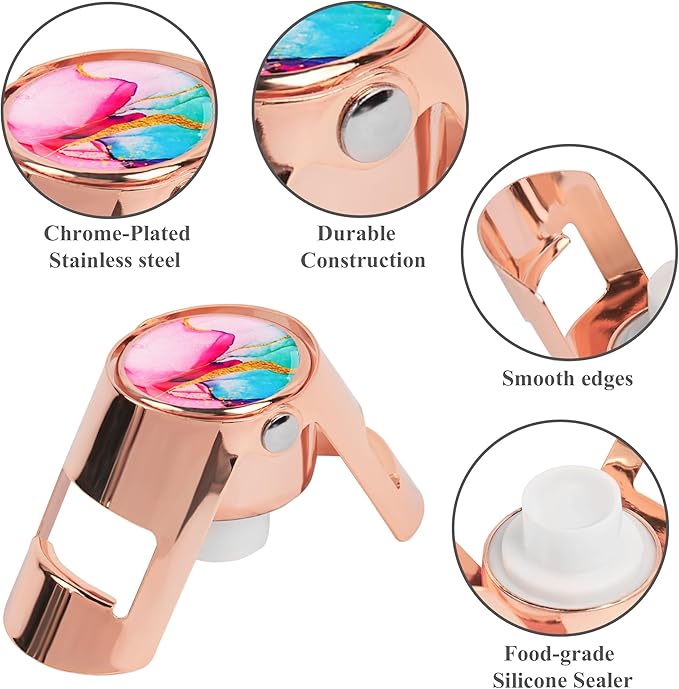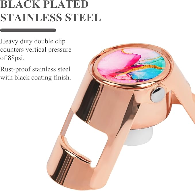 LIZIMANDU Champagne Stopper, Stainless Steel Bottle Plug Sealer for Sparkling Wine, Superior Leak,keeps Wine, Champagne, Prosecco, Cava, and Sparkling Wine fresh longer(1-Red Green Splash Ink)