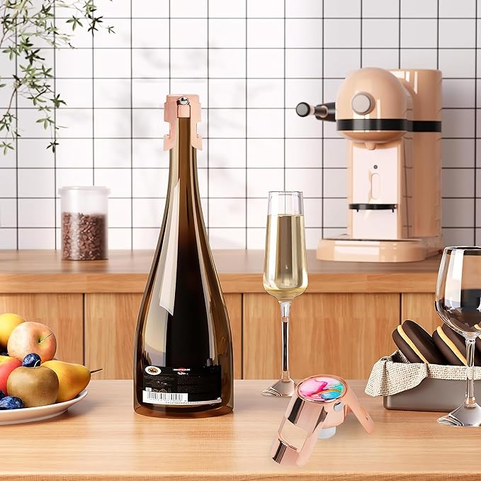 - Easy to Use: Just insert the champagne stopper into the bottle, fold down the hinge-mounted flaps to lock onto the lower lip of the sparkling wine bottle.