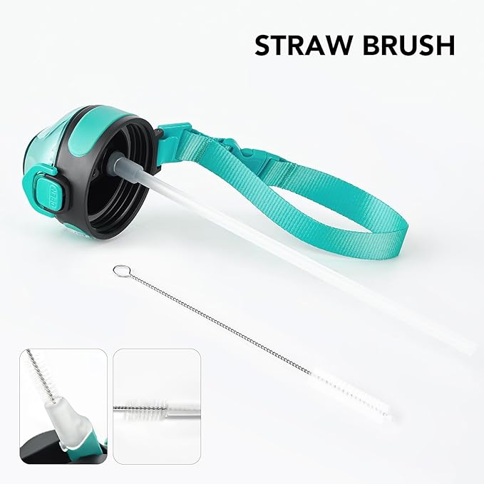 - Humanized Design: The one-hand operation button allows for easy access to water. Highly suitable for boys and girls, and all ages. The flip-top lid of the insulated thermos is used a secure lock, making it dust-free and leak-proof. The included straw brush makes maintaining your bottle's cleanliness uncomplicated and efficient.