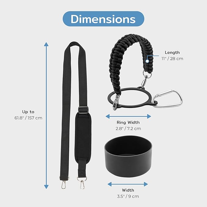 • ✅ COMPLETE CARRYING SOLUTION: Upgrade your 32oz bottle with the BOZ Water Bottle Strap Kit, which includes a paracord handle, silicone boot, and adjustable shoulder strap. This kit provides everything you need for convenient and secure bottle carrying.