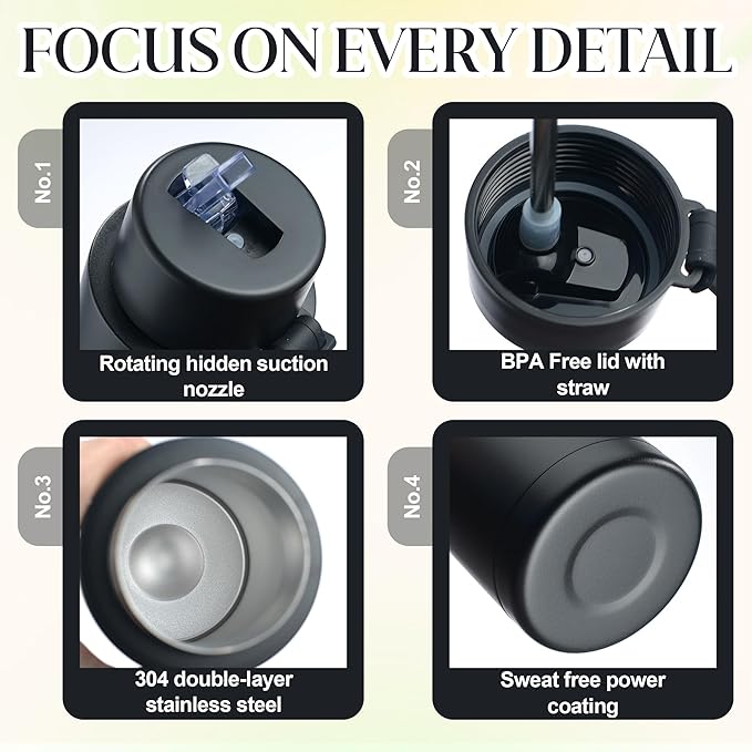 - Convenient Straw and Handleless Design: Features a built-in straw for easy sipping and an innovative rubber drawstring strap for easy carrying without the need for a handle.