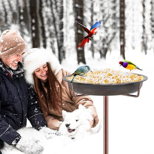- 【Multi-Functional Bird Bath Bowl】 The metal bird bath is multi-purpose. The outdoor bird feeding tray can be used as a bird bathing or bird feeder according to your needs, attracting charming birds to your backyard to bath or share a feast; Outdoor garden bird bath is a perfect present for nature lovers, wild bird watchers and friends who love small animals will enjoy.