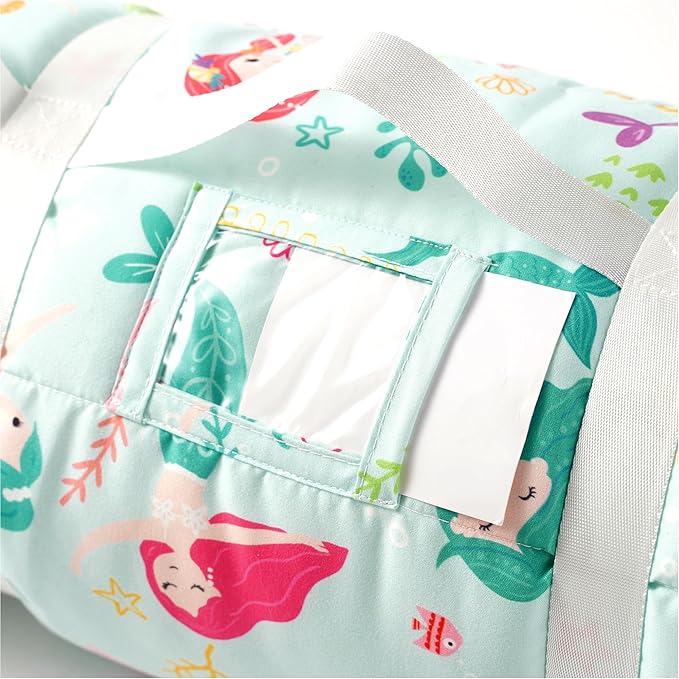 - COMFORTABLE AND WARM: Each lightweight toddler sleeping bag consists of a built-in floor mat, a warm attached blanket, and a pillow - all comprised of a soft cotton and polyester blend that is sure to be gentle on your little one's sensitive skin.