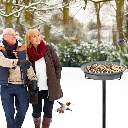 28In Freestanding Birdbaths Bowl Outdoor, Free Standing Garden Bird Bath Bird Feeder Bowl with Metal Stake, Detachable Decoration Spa Birdfeeder for Garden Patio Yard Lawn, 4 Spiky Feet (Grey)
